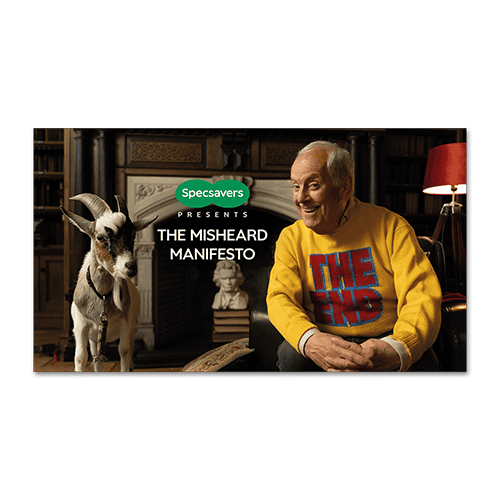 After dropping these sayings (eggcorns) into mainstream TV and radio shows without any explanation to cause debate, we launched The Misheard Manifesto, correcting the nation’s mishearing and prompting them to book a hearing check at Specsavers. From an earned-first idea we delivered smartly across channels - securing a wave of mass National and broadcast media awareness, creating fun and education video content for social and even creating a radio ad. All driving a staggering 400% above target increase in hearing check bookings.